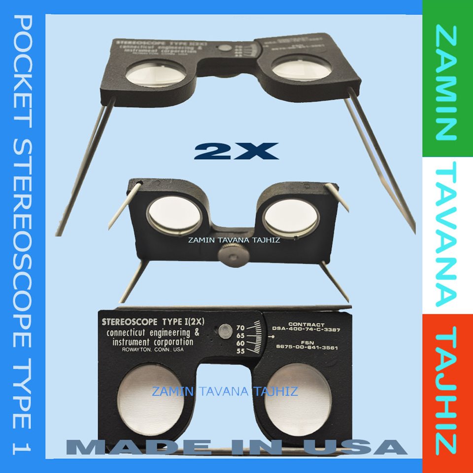 استریوسکوپ جیبی ساخت آمریکا بزرگنمایی 2 برابربا میدان دید وسیع دارای عدسی دوبل برای هر چشمی دارای پایه فلزی و پیچ تنظیم و بدنه فلزی با قابلیت تنظیم باز چشم برای USER محصولی بسیار با کیفیت و با دوام برای فعالیت های آموزشی و صحرایی و ....
