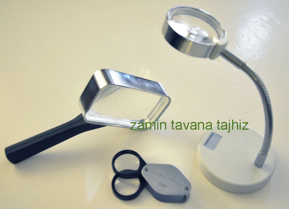 1- عدسی دستی با قطر 30 میلیمتر با لنز کانوکس یک عدسی با بزرگنمایی 4 برابر و یک عدسی با بزرگنمایی6 برابر و مجموع 10 برابر
