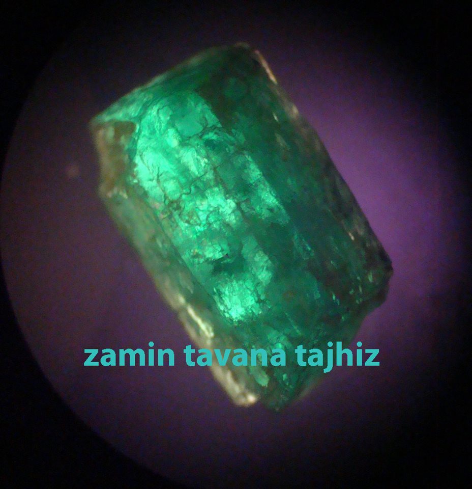 بپیوست نمونه کوچکی از یک زمرد با استفاده از بزرگنمایی 20 برابر که در زیر پلاریسکوپ تصویر برداری شده را مشاهده مینمایید